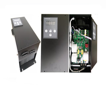 變頻電磁加熱器是一種利用電磁感應原理將電能轉換為熱能的裝置。將220V或380V,50Hz的交流電轉換成頻率為20-40KHz的高頻高壓電,高速變化的高頻高壓電流流過線圈會產生高速變化的交變磁場,當磁場內的磁力線通過導磁性金屬材料時會在金屬體內產生無數的小渦流,使金屬材料本身自行快速發熱,從而加熱金屬材料料筒內的東西。同時,配合高效能的保溫裝置,最大程度減低熱損耗,這樣就能達到大幅節電的效果。使用這種發熱方式,其能量轉換效率高達90~95% 電磁加熱系統由兩部分組成:電磁加熱控制板和加熱線圈。原機受溫度控制的電源[加熱輸出接觸器(或固態繼電器)輸出端]經電磁加熱控制板將工頻交流電整流、濾波、逆變成18~30KHz的高頻交流電,通過連接線接到電磁加熱圈上,高頻交流電透過保溫材料作用于料筒,使料筒本身發熱。另外,也可以把電源直接輸入到電磁加熱控制板,原有的溫度控制器直接用來控制電磁加熱控制板。電磁加熱器一種新型加熱節能產品,在產業化方面,匯熱成立電磁加熱應用事業部,不斷拓展電磁加熱應用領域,勵精圖治,做全球電磁加熱的領軍企業。